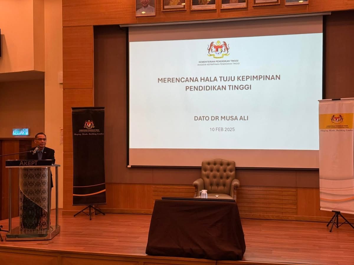 NILAI, 10 Feb 2025 – Pembangunan bakat kepimpinan pendidikan tinggi Negara perlu mempunyai dasar yang jelas. Demikian menurut Ketua Pegawai Eksekutif M Talent yang juga Profesor Adjung DRB-HICOM University of Automotive Malaysia, Dato Dr Musa Ali semasa sesi perkongsian di bengkel anjuran Akademi Kepimpinan Pendidikan Tinggi (AKEPT), Kementerian Pengajian Tinggi bertempat di Auditorium AKEPT. Bengkel itu dihadiri lebih 80 orang pegawai yang terlibat secara langsung dengan pembangunan bakat di peringkat pusat dan universiti awam di Malaysia.